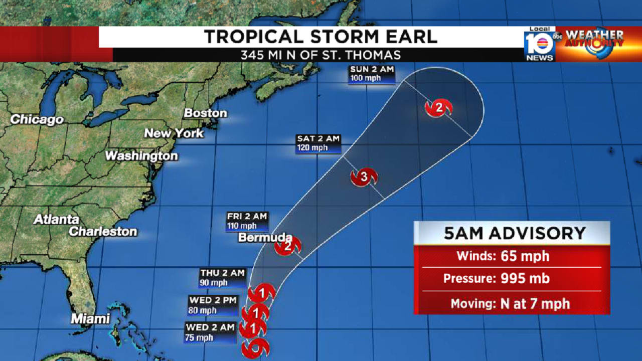 Earl Forecast To Become A Hurricane Move Near Or East Of Bermuda By Friday